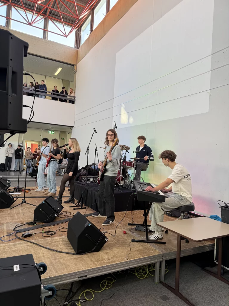 Musikalisch sorgte die Schulband SixUnited für Höhepunkte. Ihr souveräner Auftritt ließ kaum Zweifel daran, warum die Band auch außerhalb der Schule auf Bühnen steht.
