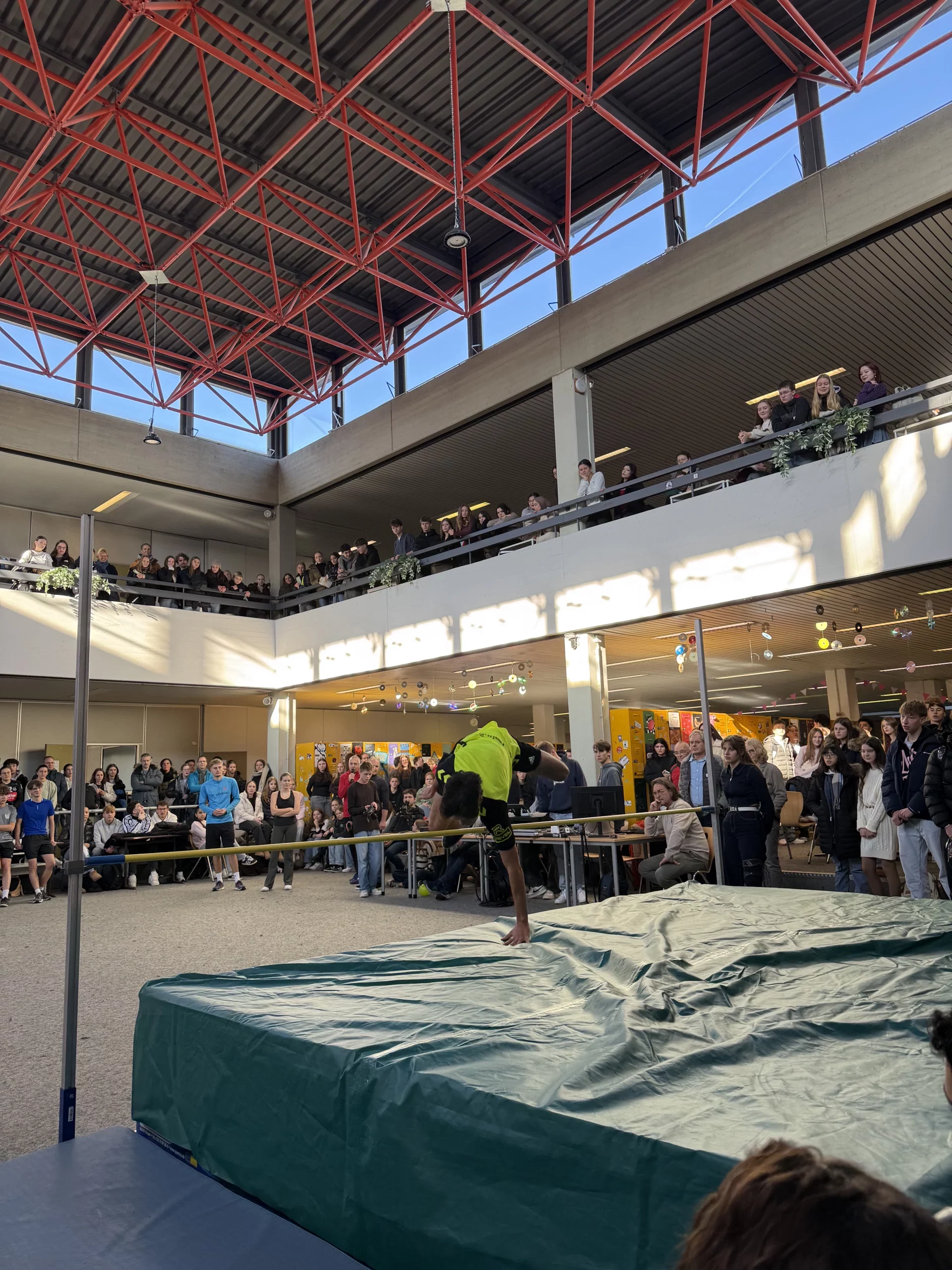 Im Sportbereich herrschte an diesem Tag fast Wettkampfstimmung. Der Sport-Leistungskurs beeindruckte mit Hochsprung bis zu 1,65 Metern – für die Springer anscheinend ein Routine-Samstag, für das Publikum eine Mischung aus Mitfiebern und Bestaunen. Die Selbstverteidigungs-AG zeigte Techniken für brenzlige Situationen, während ein Sportkurs mit Line Dance demonstrierte, wie viel Energie und Spaß koordinierte Schritte auslösen können.