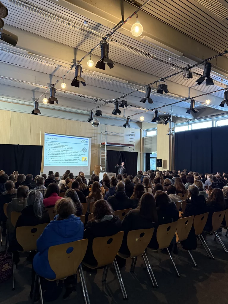 Schon am Vormittag zeigte sich, wie groß das Interesse war: In der Aula fanden die Vorträge über die Alfred-Delp-Schule und den Aufbau der gymnasialen Oberstufe vor voll besetzten Reihen statt. Viele Gäste nutzten die Gelegenheit, sich in Ruhe über Abläufe, Fächerwahl und den Einstieg in die Oberstufe zu informieren. Und auch wenn manche Zehntklässler anfangs noch etwas schüchtern wirkten, legte sich das zunehmend.