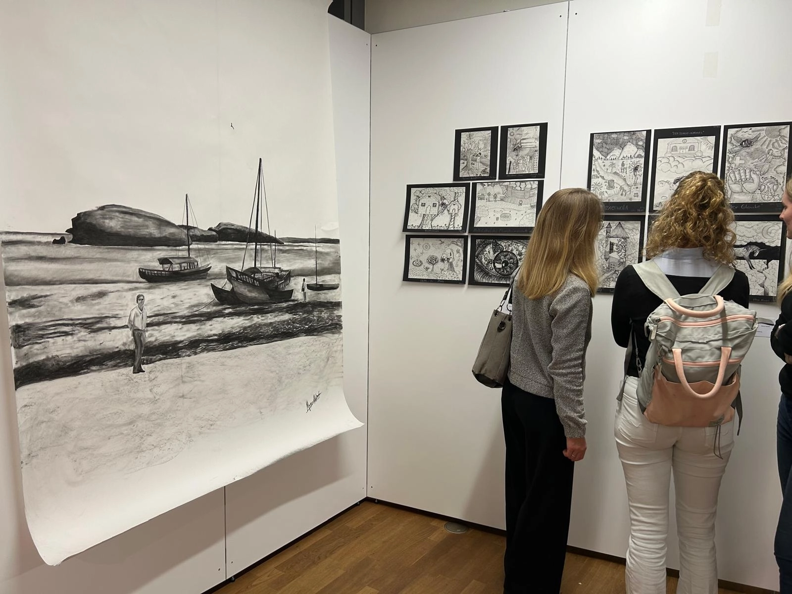 Auch formal zeigt sich die Kunstausstellung äußerst vielseitig: Zeichnungen in Kohle, Malerei in Acryl- und Wasserfarben, Skulpturen aus unterschiedlichen Materialien, digitale Arbeiten sowie ein Film sind zu sehen.